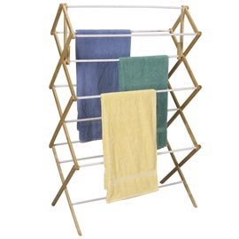 Save money on your utility bills by air drying laundry...and your clothes will last longer, too. This Collapsible Mega Drying Rack is made with a heavy-duty wood frame and 11 coated drying bars. No assembly needed. Just expand this rack and flip the support bars into place and start hanging your laundry to air dry. You get 29 feet of drying space on 11 coated bars. The sturdy wood frame easily supports large items or multiple garments. 52"x34 ½"x18 ½".