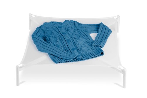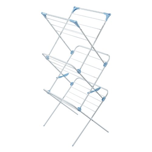 A nice alternative to cranking up the dryer for a small batch of clothes, this accordion rack from Polder is convenient and simple. Crafted from metal, the rack drops open into position with 10 slender rods to drape delicates, woolens, swimsuits, snow gear, and workout clothes. Its top level works well for flat-drying sweaters, and its total line area is approximately 14.5 feet. Smaller than most standard racks, this one measures 21 by 15 by 42 inches when set up and collapses to just 3 inches thick for storage. Also available in white and chrome/white, this version is gleaming chrome all over for a sleek, light-on-its-feet look.